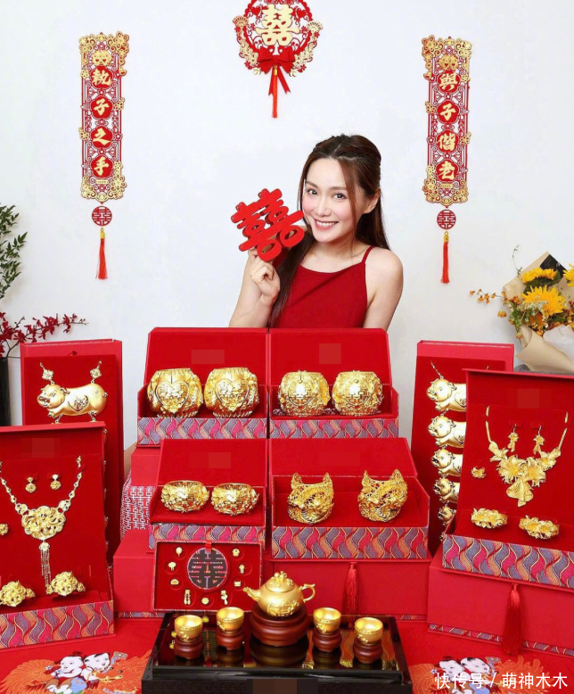 11月29日,汤洛雯晒出过大礼的现场照,马国明砸大手笔迎娶汤洛雯,准备了巨型龙凤镯及各种金器和礼饼,揣摸总值过百万,汤洛雯并立红衣站在金器、喜饼的C位,春风忻悦。